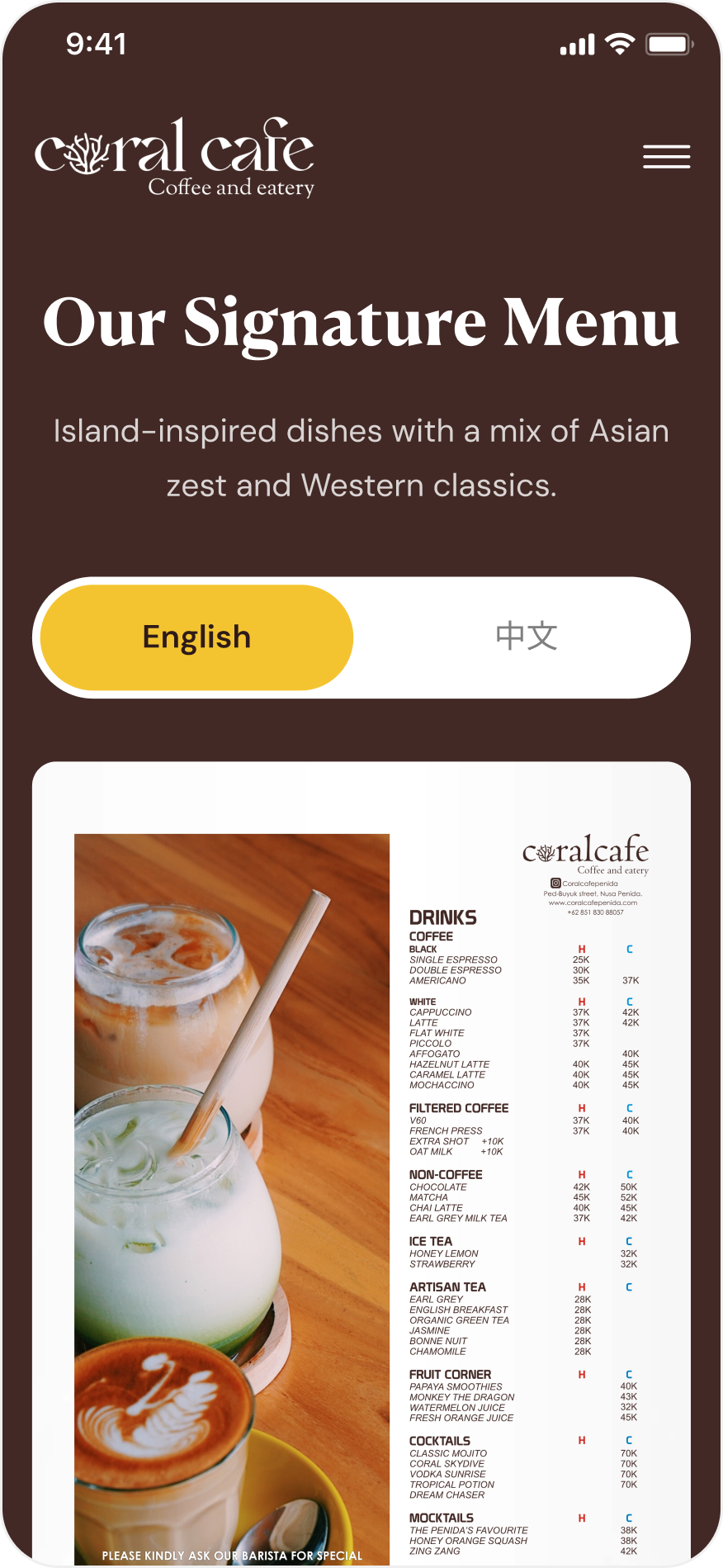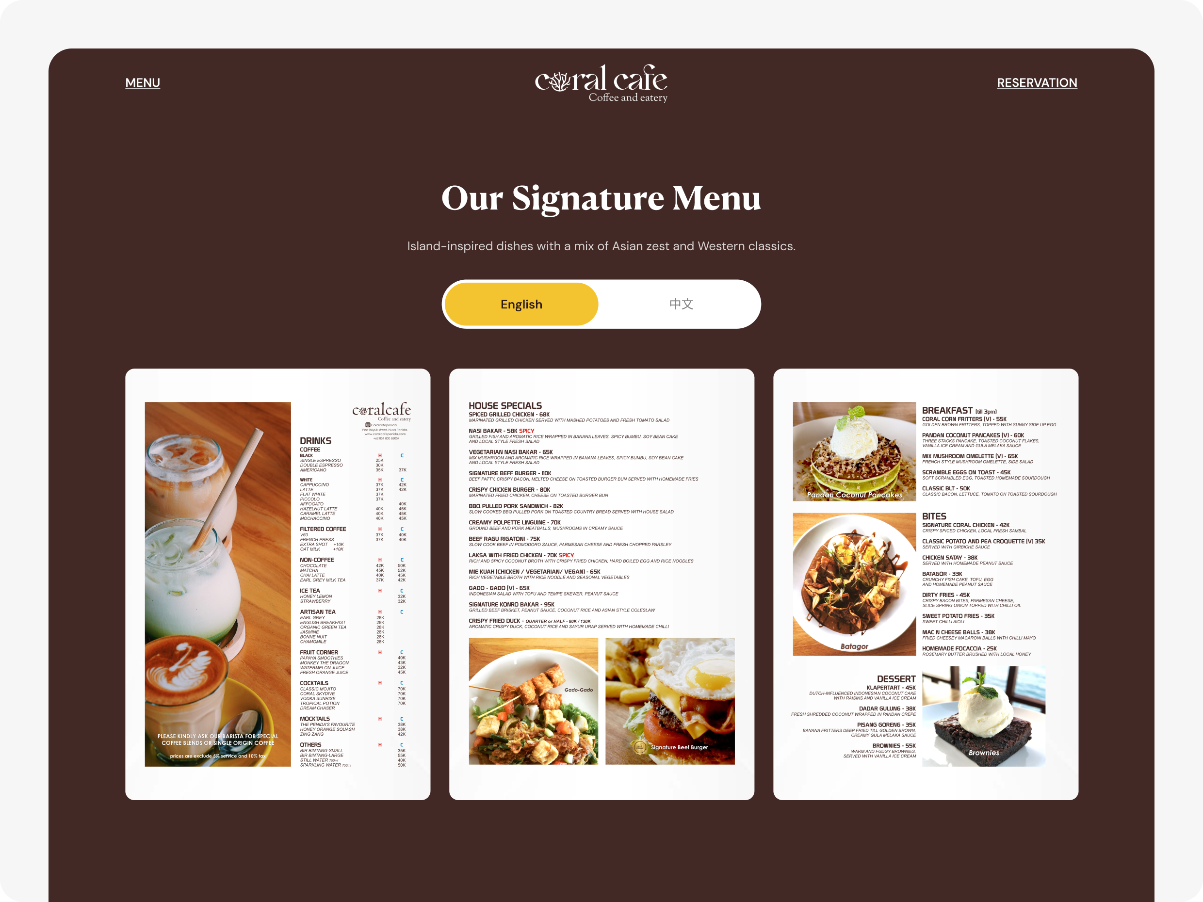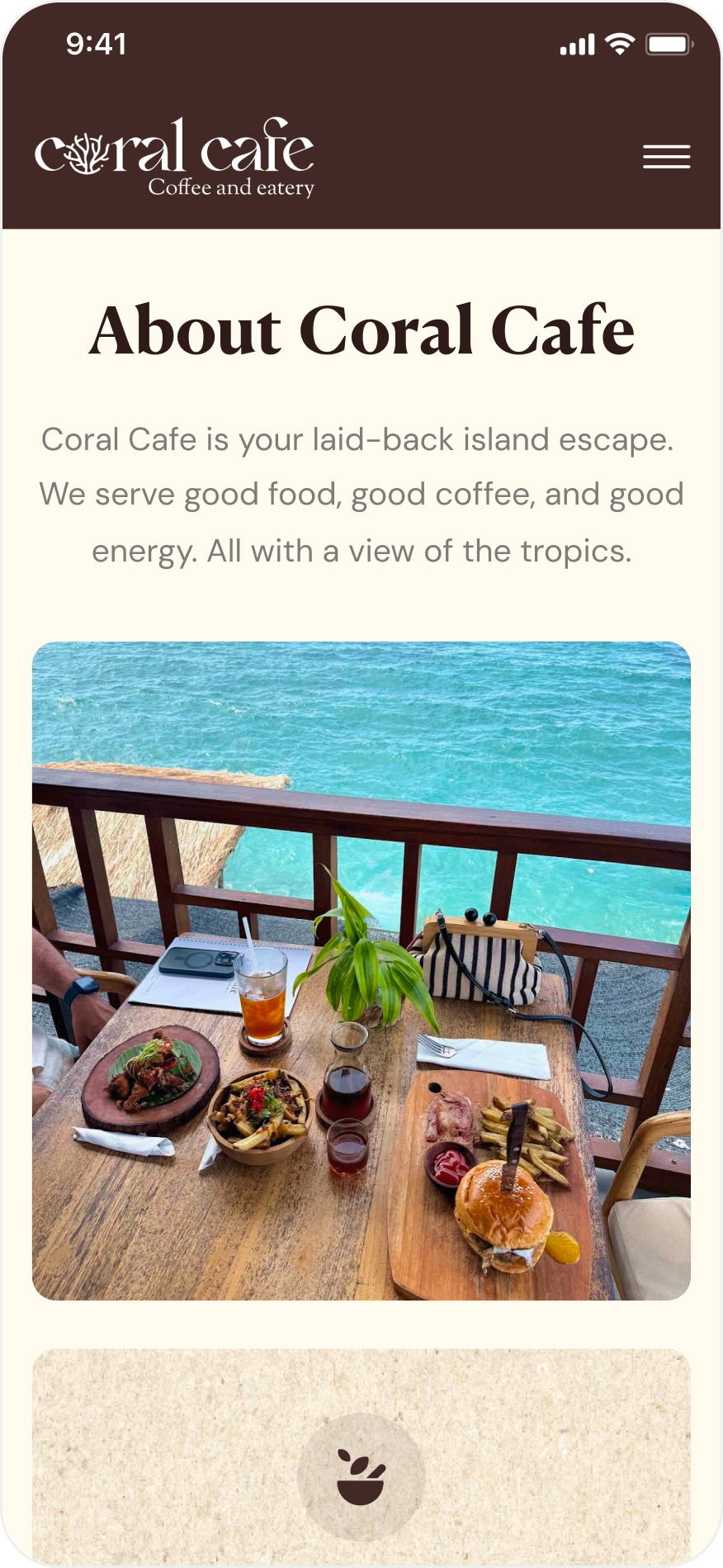Website ini berfungsi sebagai media utama untuk menampilkan menu, fasilitas, dan informasi terbaru dari Coral Cafe. Dengan platform online ini, kafe dapat menjangkau lebih banyak pelanggan, meningkatkan citra profesional, dan semakin dekat dengan komunitas lokal maupun wisatawan. Selain itu, website ini membantu membangun citra kafe yang ramah, otentik, dan dekat dengan komunitas lokal maupun wisatawan.