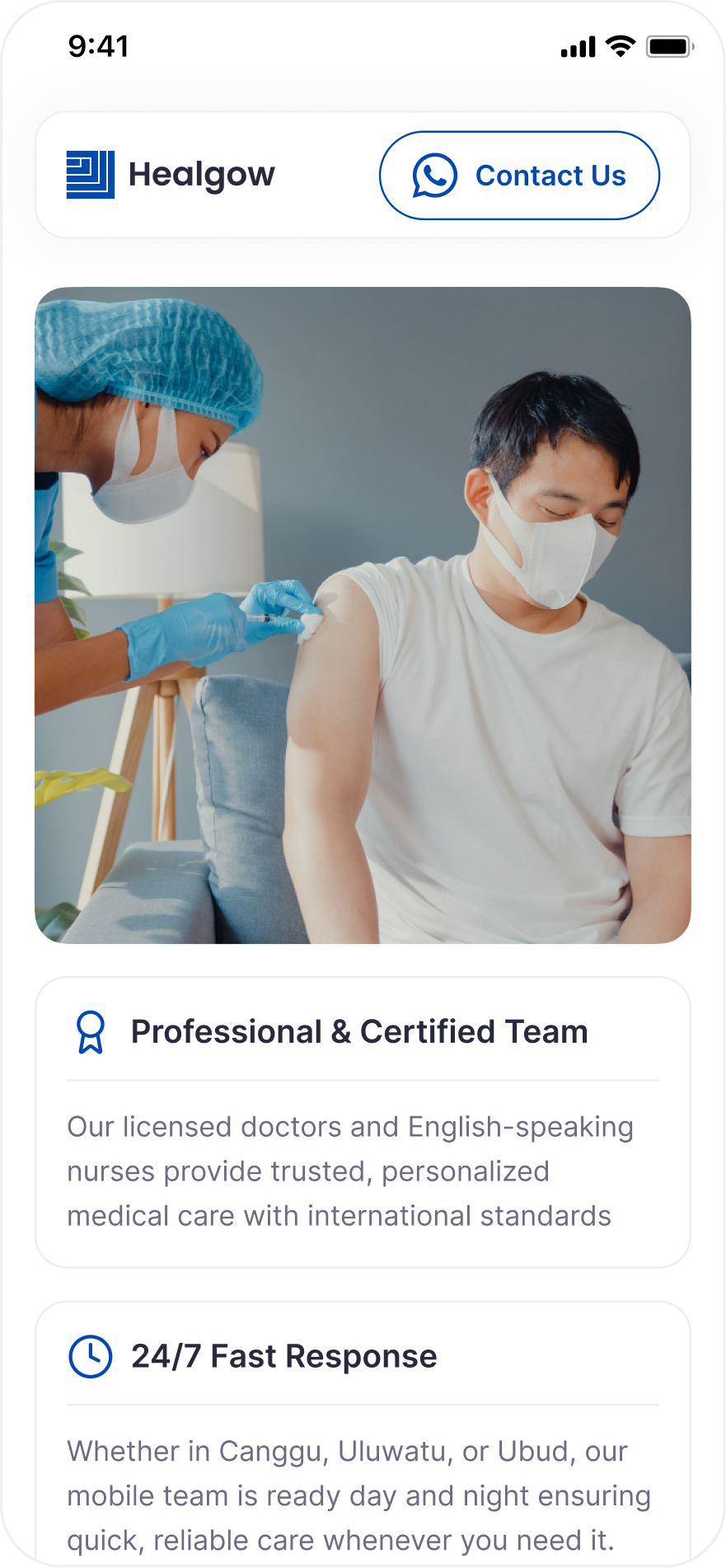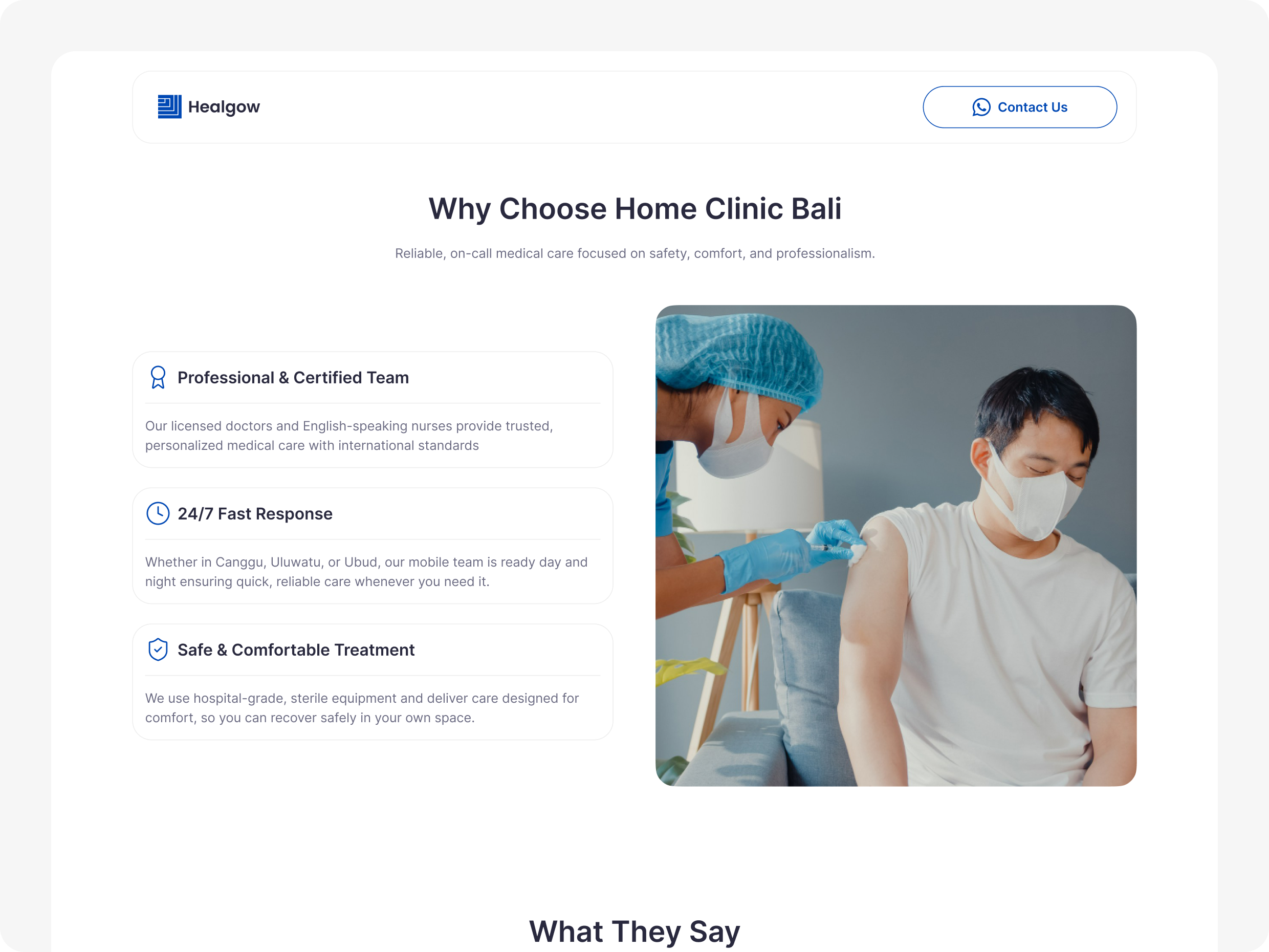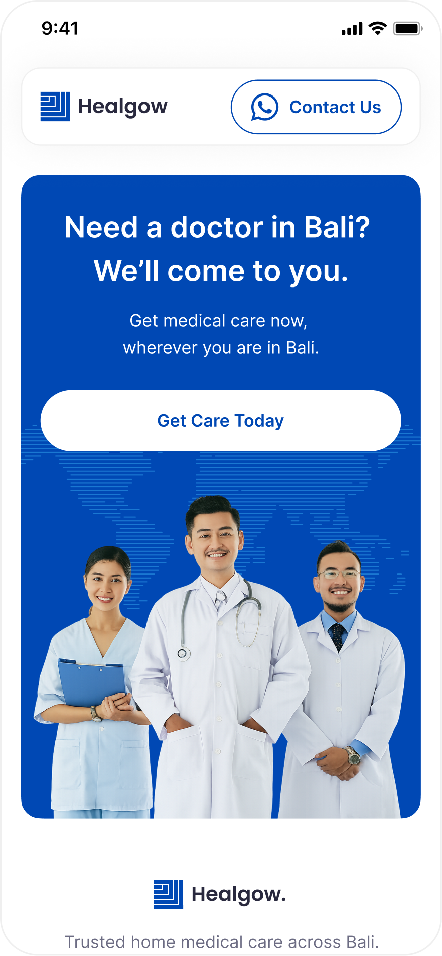 Website ini dibuat menjadi titik awal bagi pasien untuk memahami layanan medis yang tersedia, melihat profil tenaga kesehatan, hingga menjadwalkan kunjungan dengan cepat. Dengan tampilan yang bersih dan pendekatan komunikasi yang human–centered, platform ini membantu memperkuat posisi Healgow sebagai penyedia layanan medis panggilan yang mengutamakan kenyamanan, keamanan, dan kualitas.