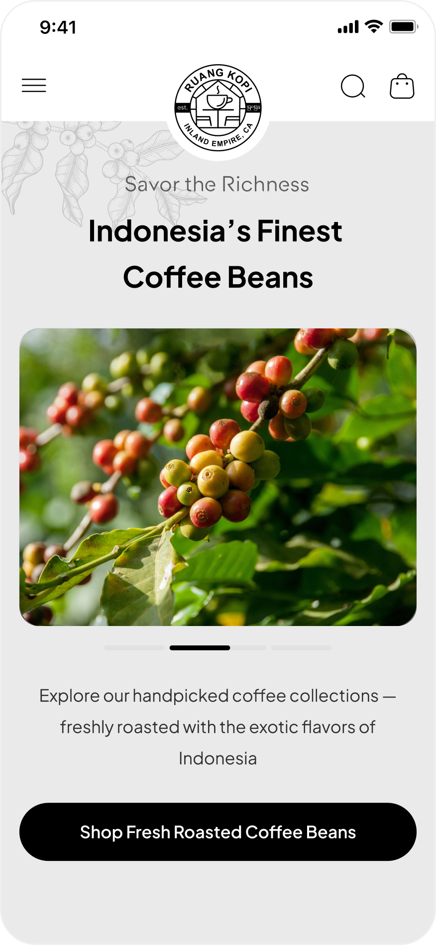 Website ini dirancang untuk memudahkan pelanggan menjelajahi varian kopi, memahami proses sangrai, hingga melakukan pemesanan dengan nyaman. Dengan tampilan bersih dan profesional, website ini mendukung brand Ruang Kopi dalam membangun kepercayaan, memperluas pasar, dan memperkuat citra kopi lokal di mata dunia.